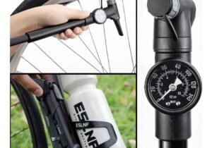 Inflador Manual Con Manómetro + Pinchos Bicis Motos Pelota Negro