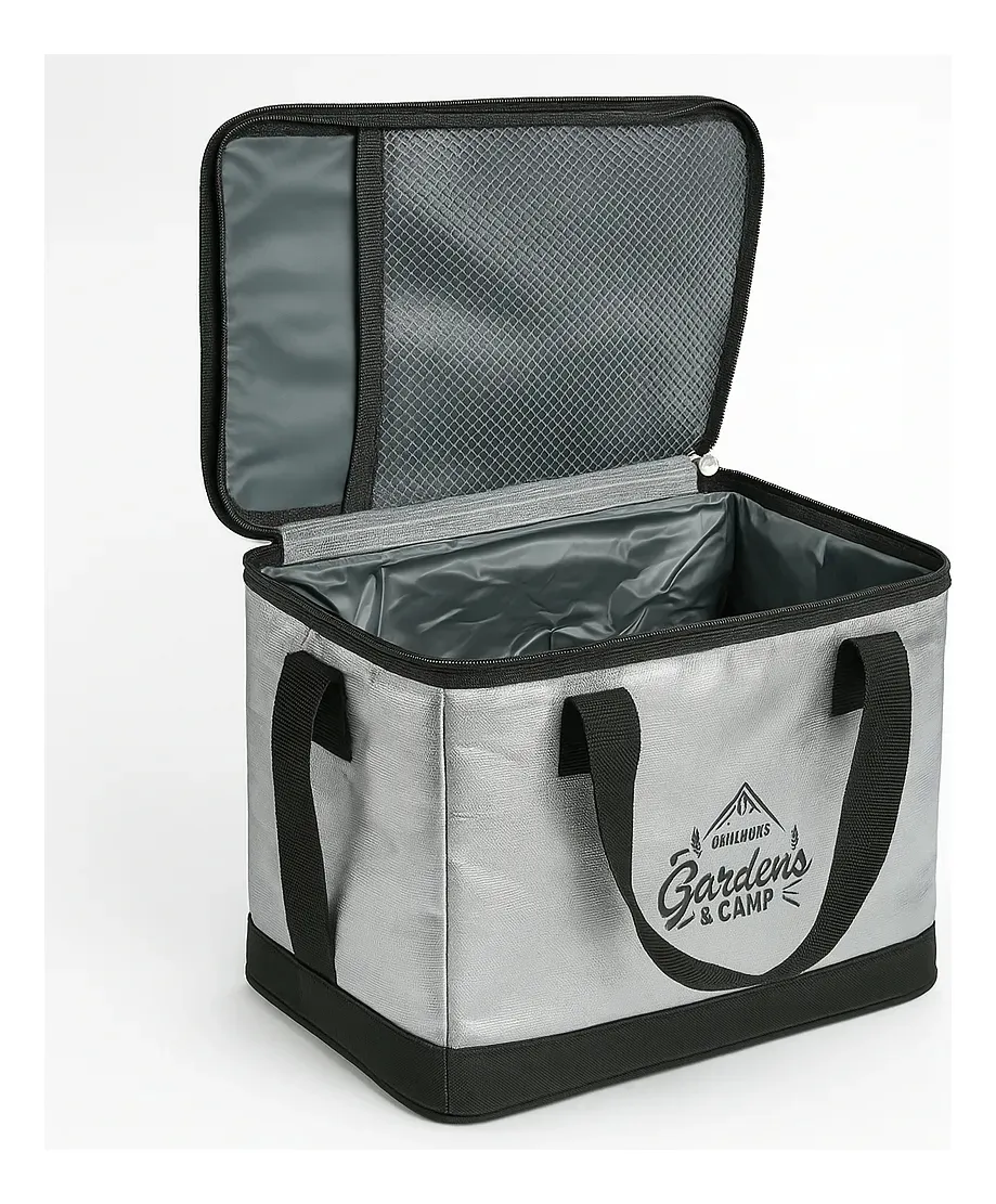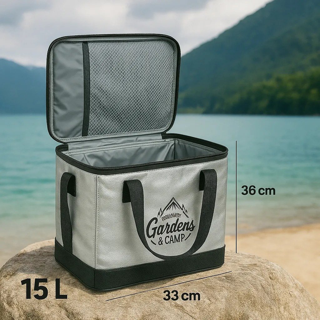 Bolso Térmico Conservadora Portátil 15 Litros – Garden Camp Practicidad, calidad y diseño en un solo producto. Este bolso térmico Garden Camp original es la solución ideal para conservar alimentos y bebidas en tus salidas al aire libre. Compacto, resistente y completamente plegable, se adapta a todas tus aventuras. Características destacadas: Capacidad: 15 litros Medidas: 33 cm (largo) x 26 cm (alto) x 19 cm (ancho) Soporta hasta 15 kilos Interior impermeable de PVC testeado Paredes térmicas con doble aislamiento (ideal para frío o calor) Bolsillo interno de red: 18 cm x 23 cm Tapa con apertura de cierre Asas de mano reforzadas + correa de hombro ajustable Bordes reforzados y costuras firmes Diseño totalmente plegable para fácil guardado Usos recomendados: Perfecto para camping, picnic, viajes, playa o delivery, manteniendo tus alimentos frescos o calientes por más tiempo con total seguridad.