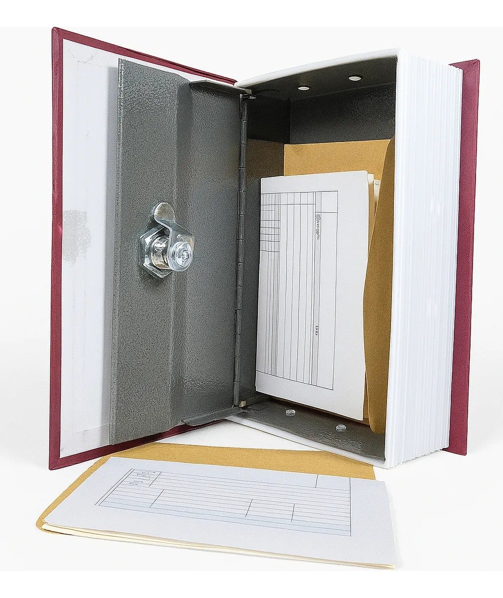 Caja fuerte con forma de libro “The New English Dictionary”. Ideal para guardar dinero, documentos y objetos de valor de forma discreta y segura. Su diseño simula un diccionario real, lo que permite camuflarla perfectamente en bibliotecas, oficinas o estanterías del hogar. Características: Exterior tipo libro con tapa dura. Borde plástico resistente simulando las hojas. En el interior se encuentra la caja metálica remachada a la estructura plástica con cerradura de llave. Incluye 2 llaves. Medidas del exterior: 18cm de altura x 12cm de ancho x 7.5cm de Espesor Medida del interior: 17cm de altura x 10cm de ancho x 5cm de Espesor Perfecta para mantener objetos importantes protegidos y fuera de la vista.