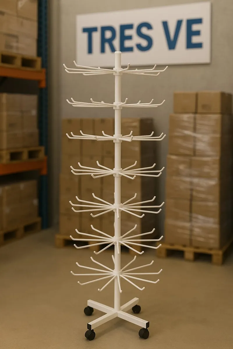 Exhibidor 7 Niveles C/ Ruedas Giratorio Collares Pulseras BLANCO