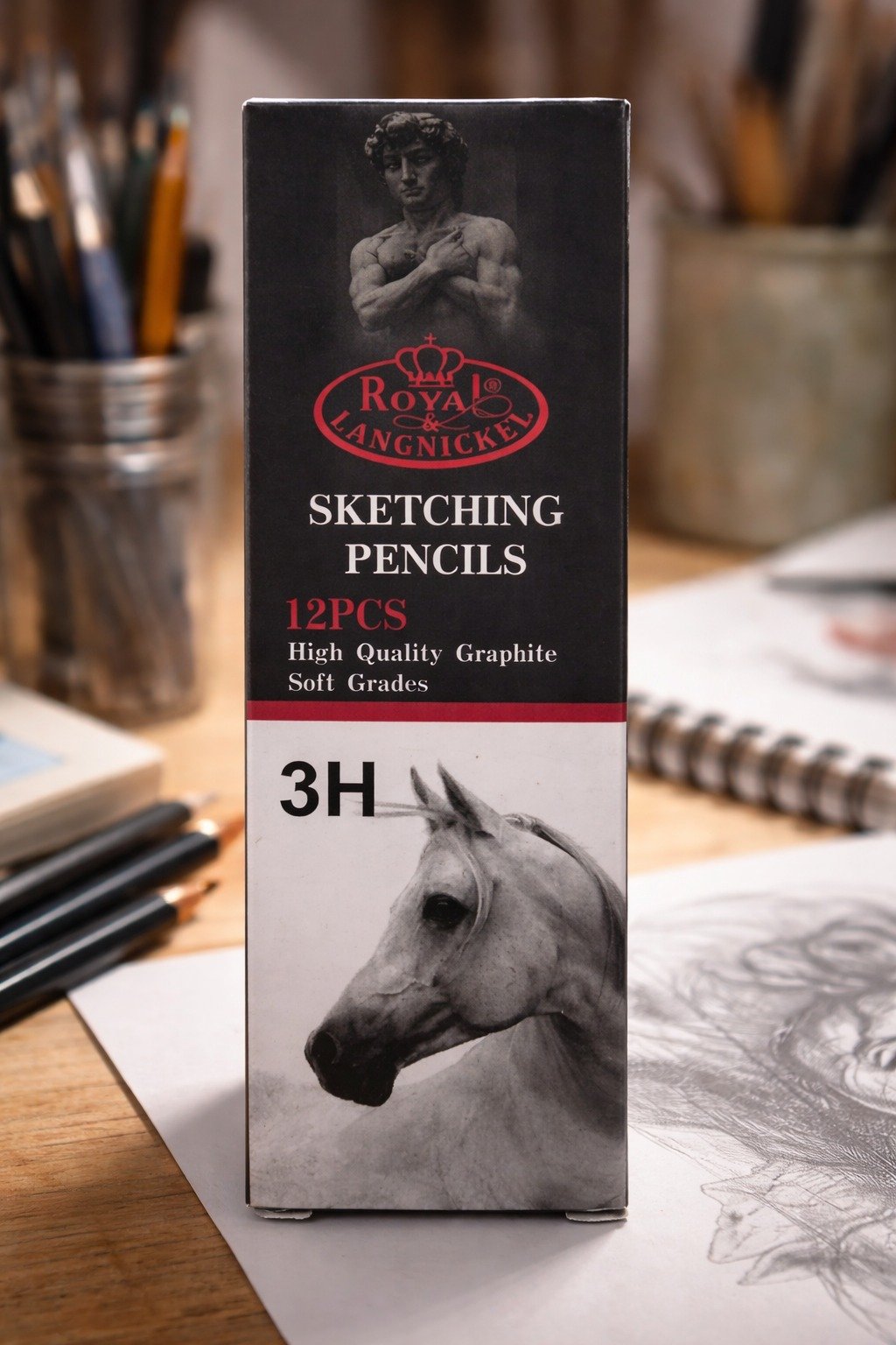 Lápiz de grafito para dibujo Royal & Langnickel, diseñado para trabajos de boceto, ilustración técnica y sombreado detallado. Fabricado con grafito de alta calidad que ofrece un trazo preciso, uniforme y controlado.