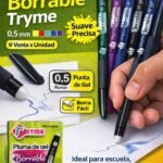 Pluma de Gel Borrable Tryme 0.5 mm x 1 unidad NEGRO