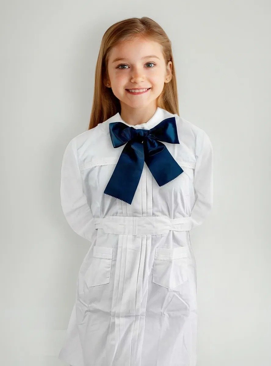 TÚNICA ESCOLAR NIÑA TABLEADA CON FESTÓN 2 BOLSILLOS PUÑOS CON BOTONES BUENA CALIDAD COSTURAS FIRMES BOTONES ATRÁS TELA ACROCEL INCLUYE MOÑA RASO DE 125CM LINEA ARCACEL *MEDIDAS  TALLE 10 Mangas 48cm Largo total 75cm Cintura 48cm