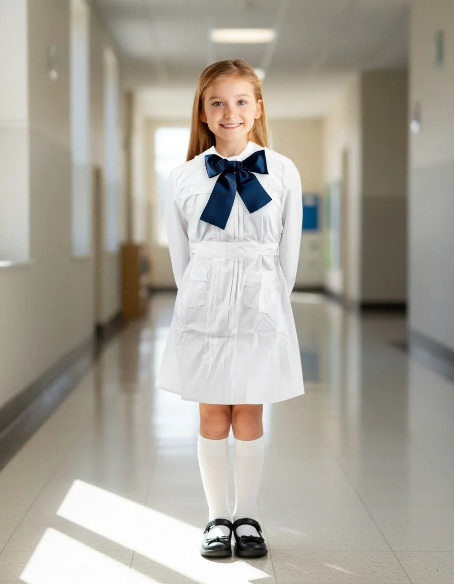 Túnica Tableada Escolar C/ Festón + Moña Acrocel Talle 10